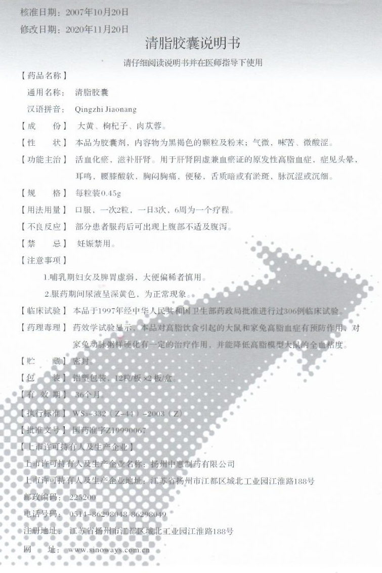 【藥品名稱】 通用名稱:清脂膠囊。